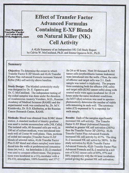 Klaim yang paling sering dibuat adalah Transfer Factor meningkatkan kerja sistem imun hingga 437%. Studi tersebut katanya diterbitkan di Journal of American Nutraceutical Association (1999). Jurnal tersebut sangat sulit dicari jejaknya di internet, suatu tanda bahwa jurnal tersebut bukan jurnal yang terpercaya atau berpengaruh.