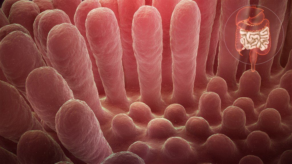 Usus anjing dan kucing juga mengalami perubahan morfologis. Vili usus bertambah pendek dan luas permukaannya bertambah kecil. Karena vili berperan dalam penyerapan nutrisi yang dimakan hewan, luas permukaan yang bertambah kecil bisa menurunkan kemampuan hewan menyerap nutrisi. Namun, beberapa penelitian membuktikan ini tidak terjadi. Proses penuaan tidak mengurangi kemampuan usus anjing dalam menyerap makronutrien (protein, karbohidrat, lemak) dan mineral. Berbagai perubahan yang diamati karena efek penuaan juga tidak signifikan. Di kucing, hasilnya lebih tidak konsisten, karena ada beberapa penelitian yang melaporkan penurunan kecernaan protein, lemak, dan karbohidrat. Karena hewan senior tetap bisa mencerna makanan dengan baik, kita tidak perlu menambah jumlah makanan atau kalori pada hewan senior. Malah, sebaiknya porsi makan mereka dikurangi karena hewan senior lebih mudah mengalami kelebihan berat badan dan obesitas.