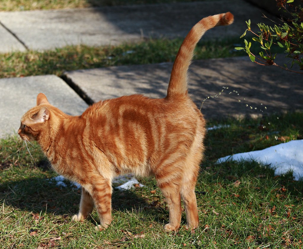 - Kucing lebih sering berdiri ketika spraying, tetapi jongkok jika urinasi.